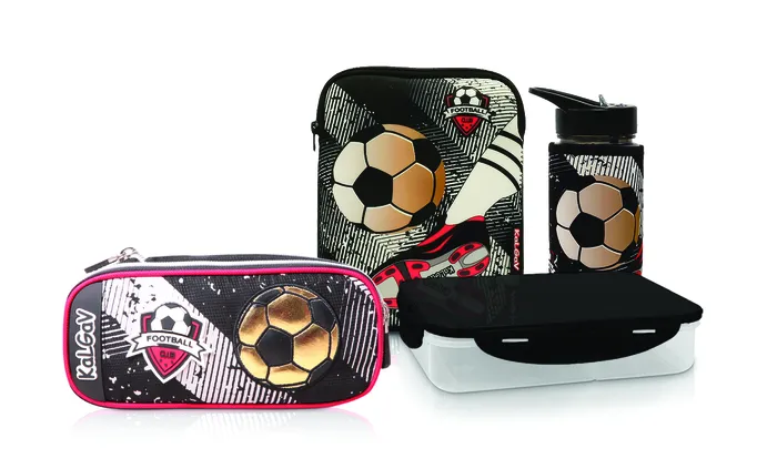 סט האביזרים כולל קלמר מתרחב, קופסת אוכל בכיסוי תרמי ובקבוק שתייה בכיסוי מבודד.