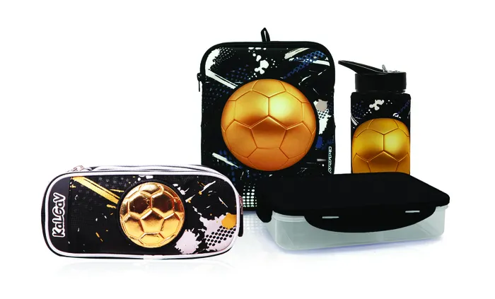סט האביזרים כולל קלמר מתרחב, קופסת אוכל בכיסוי תרמי ובקבוק שתייה בכיסוי מבודד.