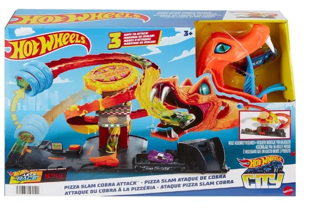 הוט ווילס מסלול מכוניות קוברה תוקף חנות פיצה – HOT WHEELS סט הרפתקה להצלת הפיצריה של Hot Wheels City מקוברה ענקית שהשתלטה עליה!