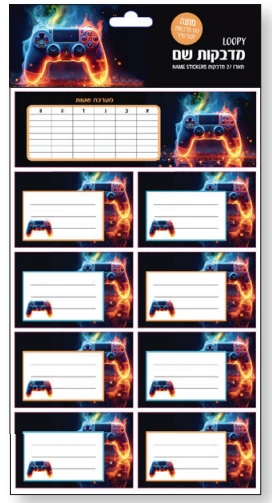 מארז מדבקות שם תלמיד גיימר אש 27 מדבקות + סט מדבקות לסנדוויץ 305542