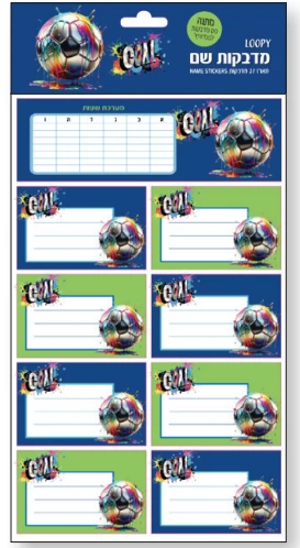 מארז מדבקות שם תלמיד כדורגל צבעוני 27 מדבקות + סט מדבקות לסנדוויץ 305541