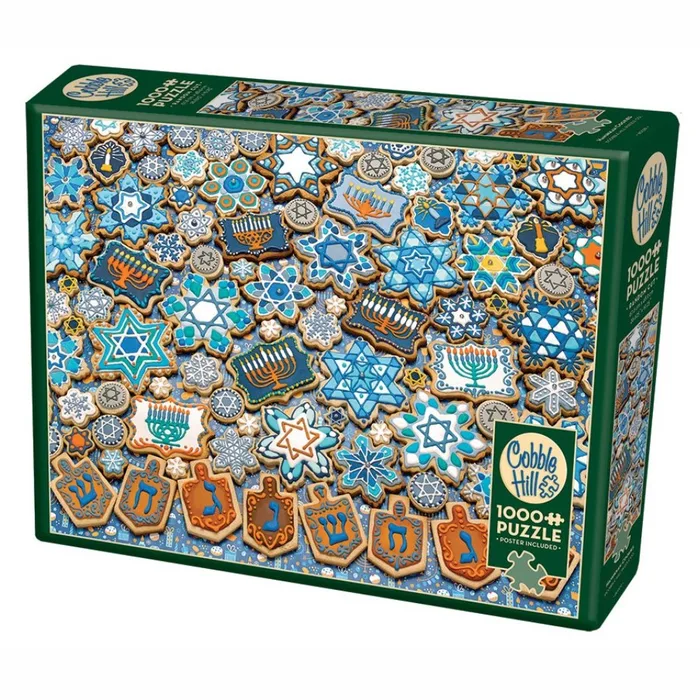 פאזל המורכב מ- 1000 חלקים היוצרים יחד תמונה מרהיבה של 'עוגיות חנוכה'