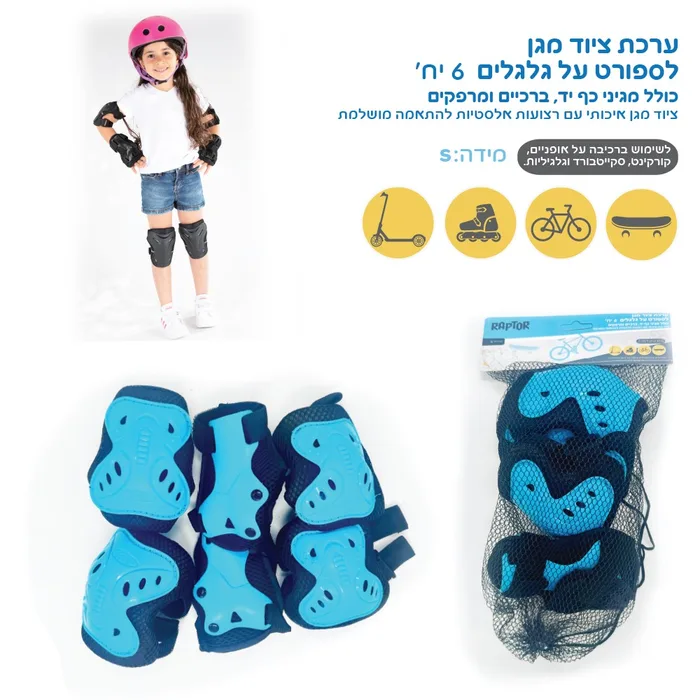 סט מגיני בטיחות לילדים לברכיים, מרפקים ופרקי כף היד בצבע שחור (מגוון מידות) 4B