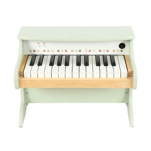 פסנתר תום הוא פסנתר קטן ומעוצב, העשוי מעץ איכותי בגימור חלק בגוון ירוק מנטה עדין. הפסנתר מצויד במקלדת אלקטרונית הכוללת 25 קלידים המותאמים בגודלם לידיים קטנות, ומאפשרים הפקת צלילים מדויקים ונעימים. מעל המקלדת מופיע עיטור כוכבים צבעוני המוסיף חן רב לכלי הנגינה, ועל גבי הפסנתר מותקן מעמד עץ להנחת דפי תווים.