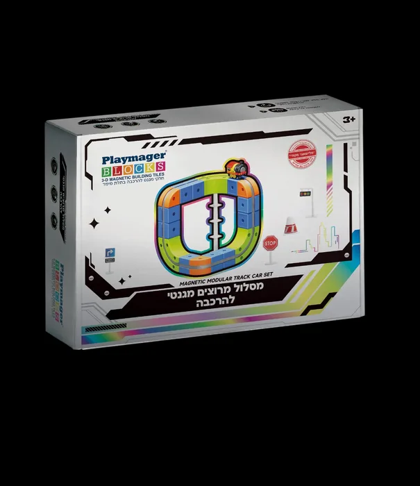 הכינו את המנועים! ערכת מסלול המרוצים המגנטי של Playmager היא השילוב המושלם בין עולם משחקי ההרכבה המגנטיים לבין עולם המרוצים המהיר. עם 70 חלקים צבעוניים ואיכותיים, הילדים שלכם יכולים לתכנן, לבנות ולהתחרות במסלולים פרי דמיונם.