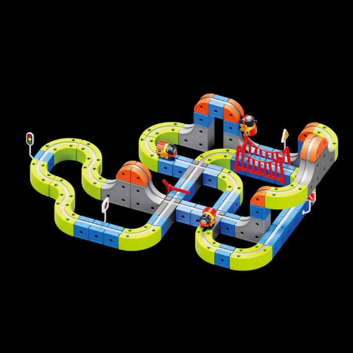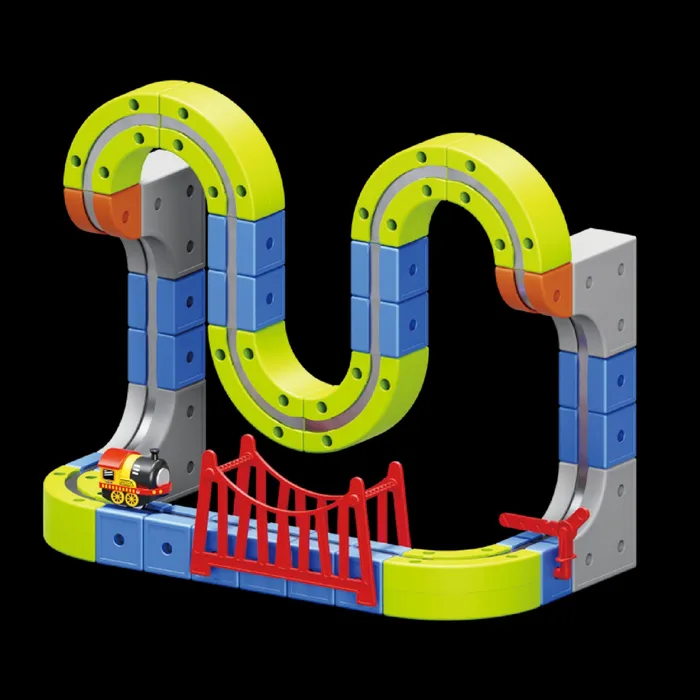 חופש יצירתי מוחלט: הערכה כוללת מגוון חלקים מגנטיים (ריבועים, משולשים ותומכים) המאפשרים בנייה של מסלולים מורכבים, גשרים, עליות וירידות. כל פעם בונים מסלול חדש!
