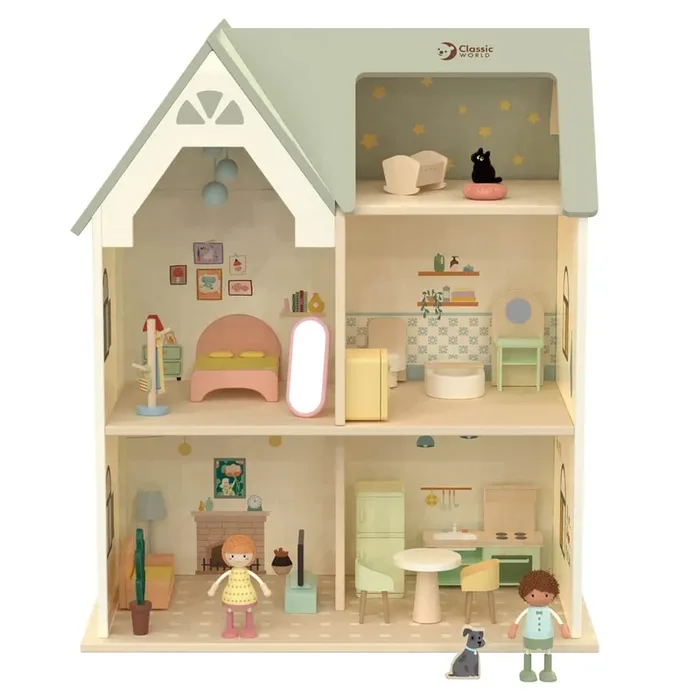 הערה: הבית מגיע כשלד יציב ומרשים. ניתן להוסיף לו סטים של רהיטי עץ ובובות משפחה (נמכרים בנפרד) כדי להשלים את החוויה ולהתאים אותה לטעם האישי של הילד.