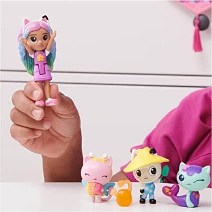 - 4 דמויות צעצוע: כוללת בובת קשת בענן בלעדית של Gabby עם שיער כחול וסגול, וחבריה החתלתולים המקסימים שלה, Pandy Paws, MerCat and Kitty Fairy, בסט דמויות חתול טקטיות זה!