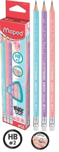 12 עפרונות HB2 MAPED פסטל עפרונות HB2 סופר איכותיים מבית מפד. גוף העיפרון בצבעי פסטל.