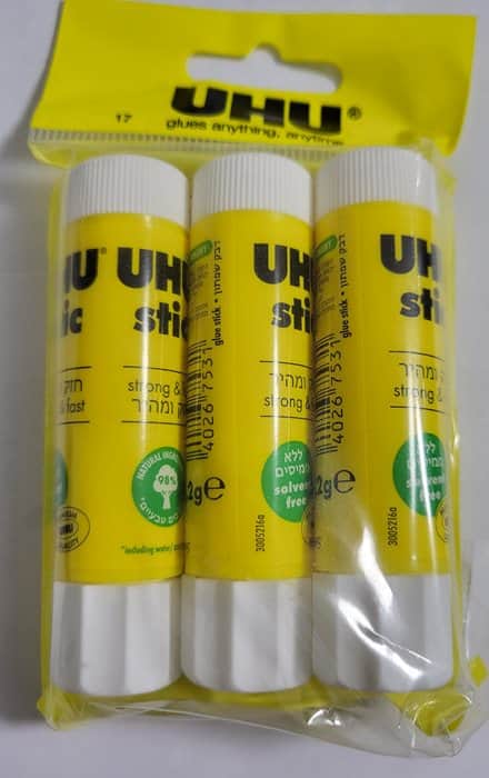 דבק סטיק UHU קטן תוצרת גרמניה, עם מכסה הברגה למניעת התייבשות (שפתון). 98% חומרים טבעיים ללא מדליים מלאכותיים. מדביק חזק, מהר ולאורך זמן. לשימוש בבתי הספר, משרדים ובבית.