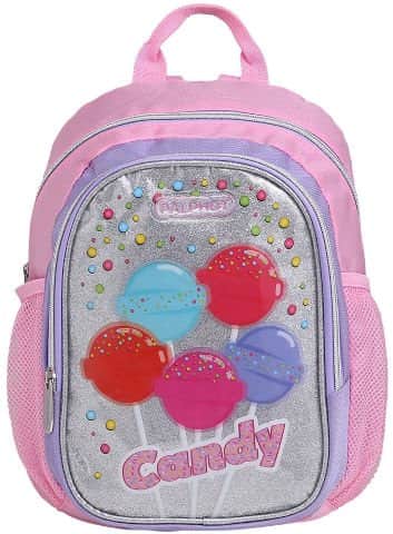 תיק גב לגן בצבע ורוד עם שני תאי אחסון ושני תאים צדדים לבקבוקים - סוכריות