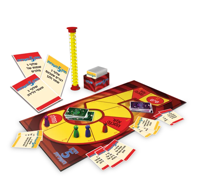 הערכה מכילה: 376 קלפי שאלה דו צדדיים (752 שאלות), 12 קלפי החלף, 12 קלפי העבר, 6 חיילי משחק, לוח משחק טיימר ספירלה וחוברת הוראות.