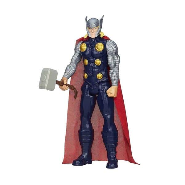דמות תור מסדרת הנוקמים במהדורת גיבורי הטיטאן מבית הסברו כוללת ארטיקולציה בסיסית ובקנה מידה המתנשא לגובה של 30 ס"מ, כך שילדים יכולים לשחק ולדמיין קרבות בגודל ענק ישירות מהקופסא!