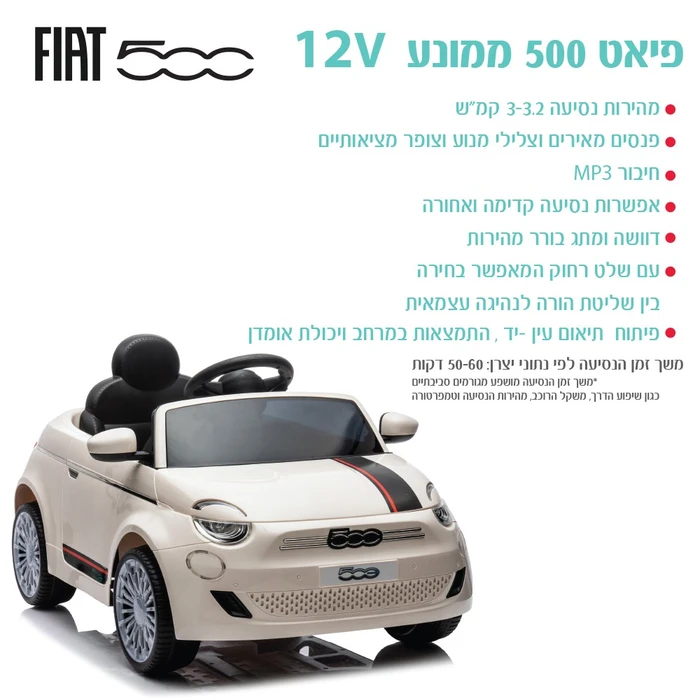 פיאט 500 ממונע 12 וולט +שלט